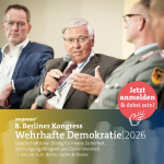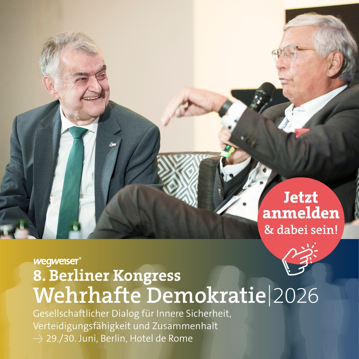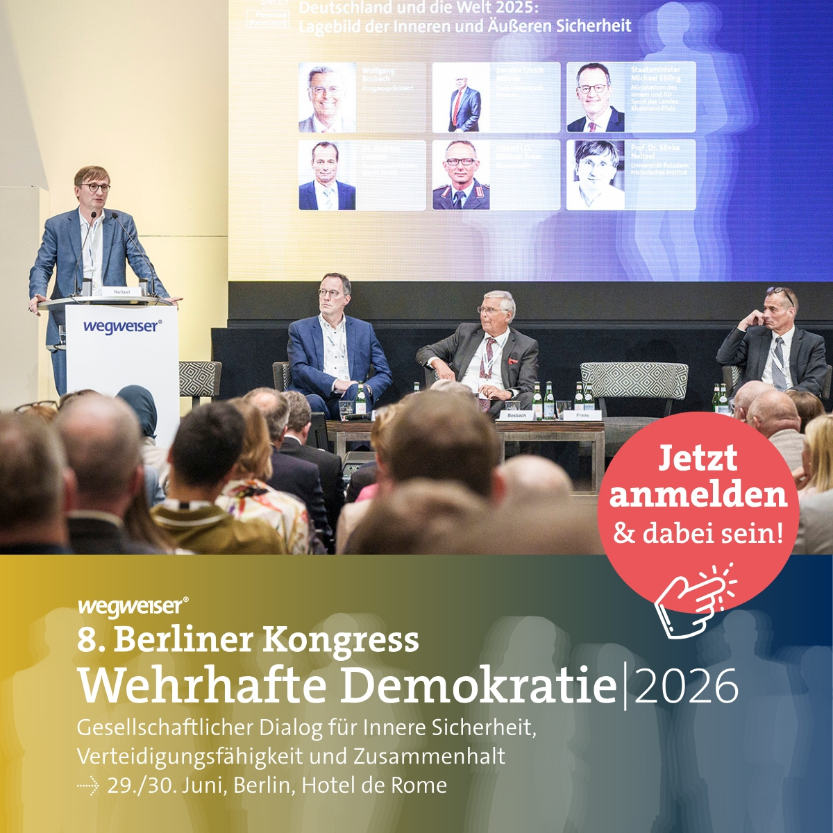 Der Berliner Kongress Wehrhafte Demokratie unter der Kongresspräsidentschaft von Wolfgang Bosbach versteht sich als der Think Tank und gesellschaftliche Dialog für die 350 klügsten Köpfe aus Politik, Sicherheitsbehörden, Zivilgesellschaft, Wissenschaft und Wirtschaft um Fragen der inneren Sicherheit einschließlich der nicht mehr trennbaren Sphären zur äußeren Sicherheit in Deutschland und Europa.